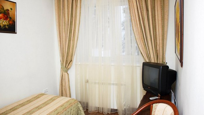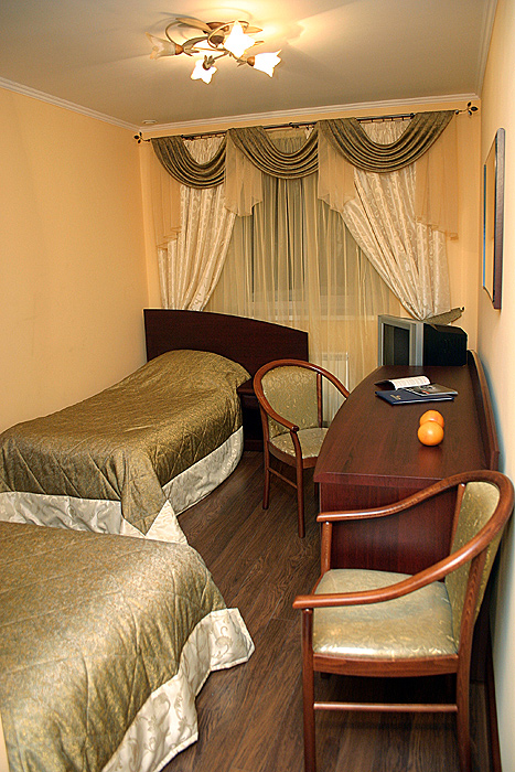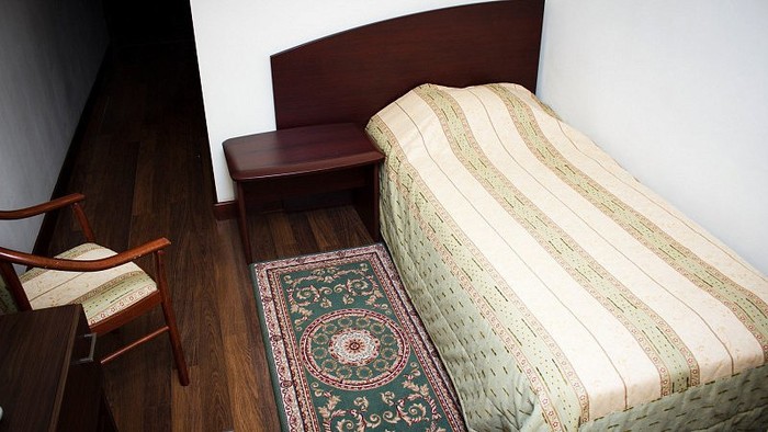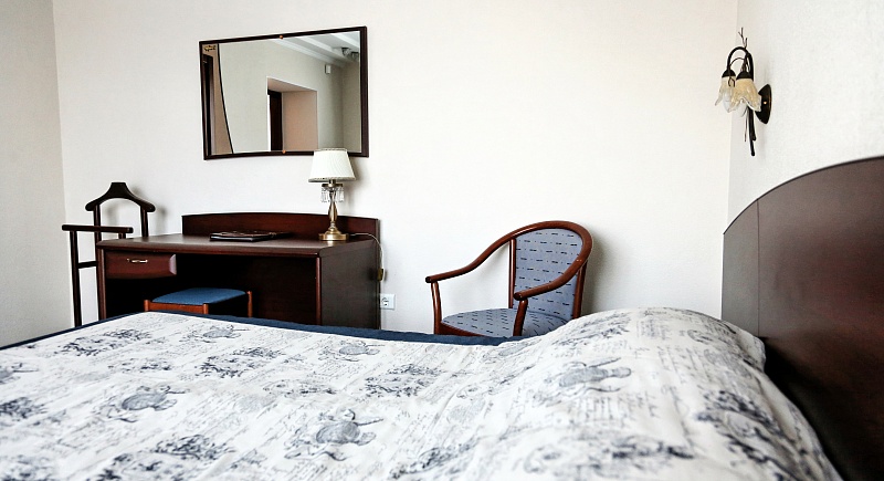 – Стандарт (1 номер). 1 основное место / 0 дополнительных мест. Однокомнатный номер: односпальная кровать, прикроватная тумба, стол, стул, мини-бар, телевизор. Санузел: душевая кабина или ванна, раковина, фен, халат, тапочки, набор полотенец, умывальные принадлежности (зубная щетка, зубная паста, разовое мыло, разовый шампунь), унитаз. Площадь номера: 14 кв.м.