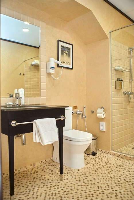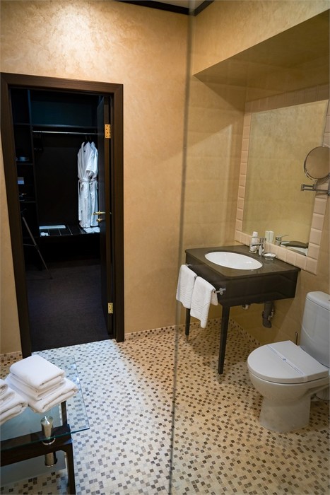 туалет, умывальник, душевая кабина, халаты, тапочки, фен
