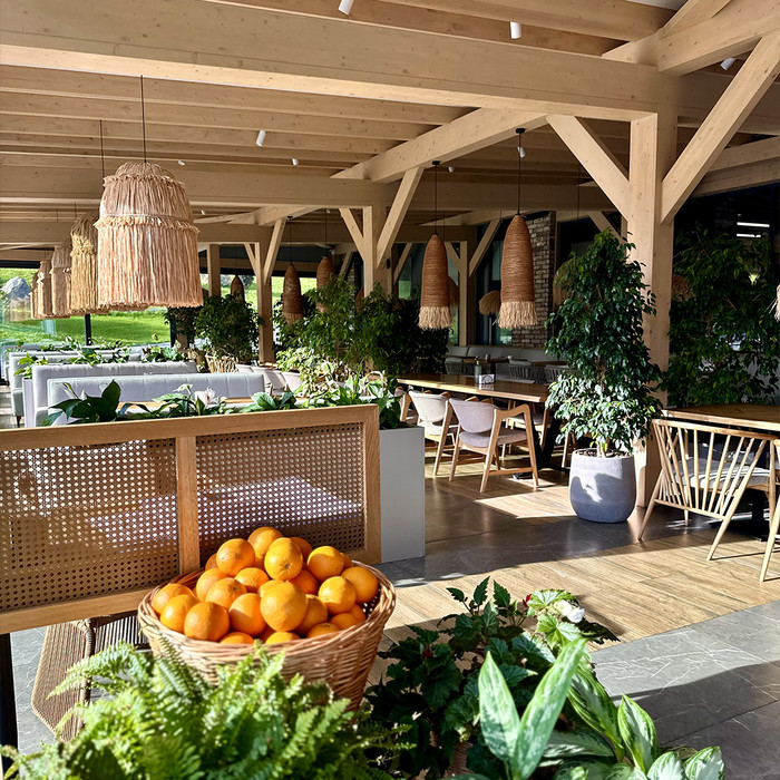ресторан «Ласточки»: до 150 мест, панорамное остекление, европейская, русская, азиатская кухня, веранда, крытая терраса с видом на горы (работает в летний период времени)