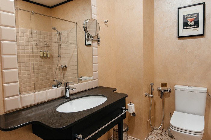 3 | 2-спальная | 80 м2, прихожая, тумба, письменный стол, журнальный столик, кофейный столик, шкаф, гардеробная, стулья, диван, пуфики, телевизор, кондиционер, телефон, чайник, чайный набор, стаканы, сейф | туалет, умывальник, душевая кабина, халаты, тапочки, фен | 2-спальная, диван | |