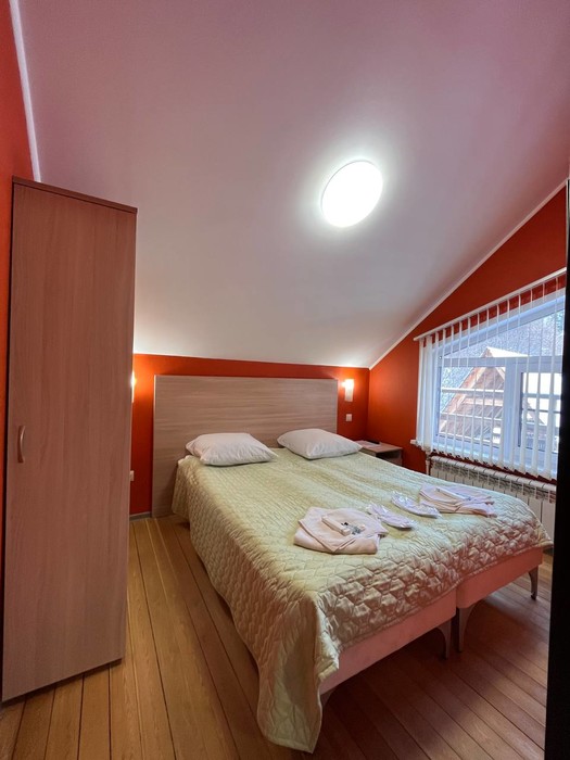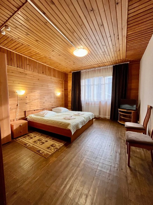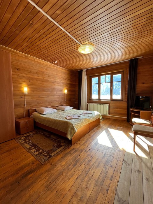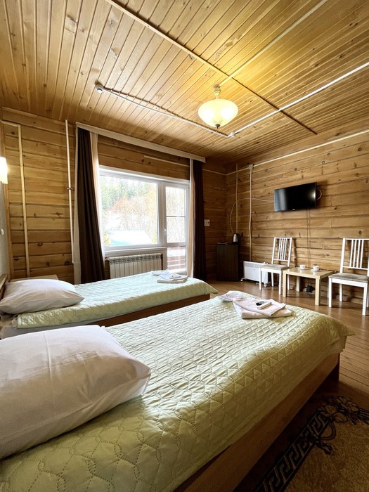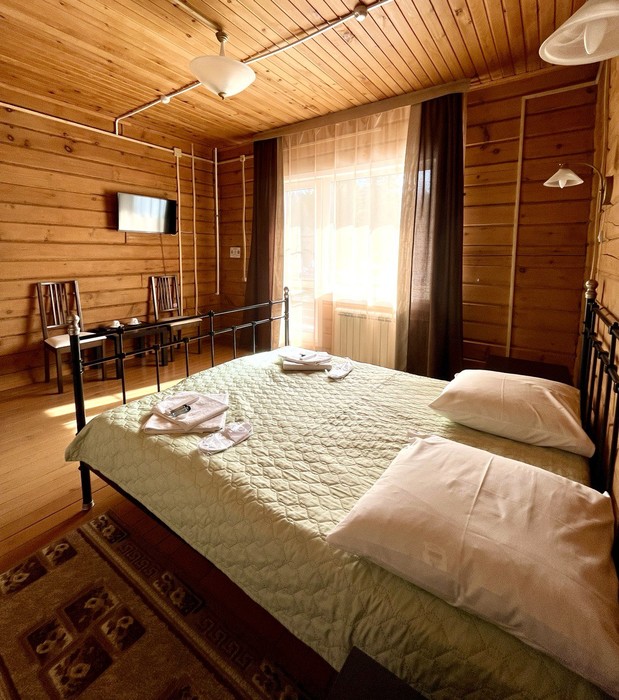 Отдыхали в августе семьей 3 человека 2 ночи. Хочется отметить в первую очередь завтраки, сытные и вкусные, голодным не уйдешь. В номере есть все необходимое, чистенько. Но вот кровать, лишний раз не хочется шевелится, скрепит очень сильно. База находиться в красивом месте, озеро рядом. В номере тепло, спали с открытой дверью. В общем неплохо.