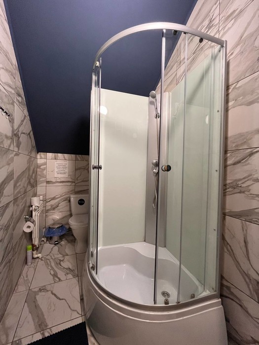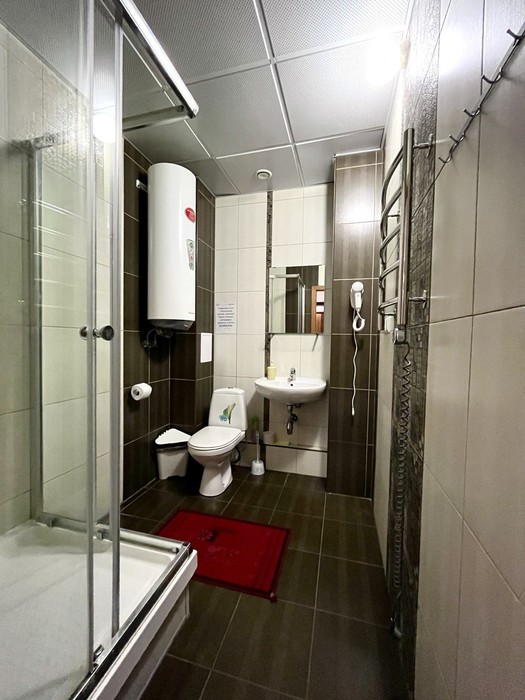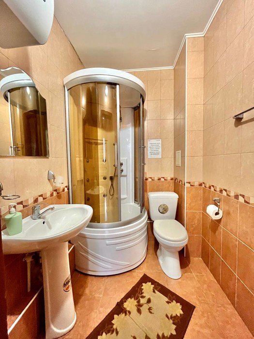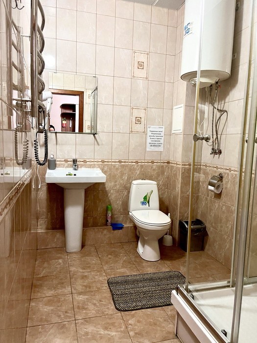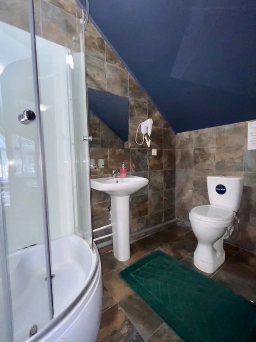 в общем блоке на 2 номера: туалет, умывальник, душевая кабина