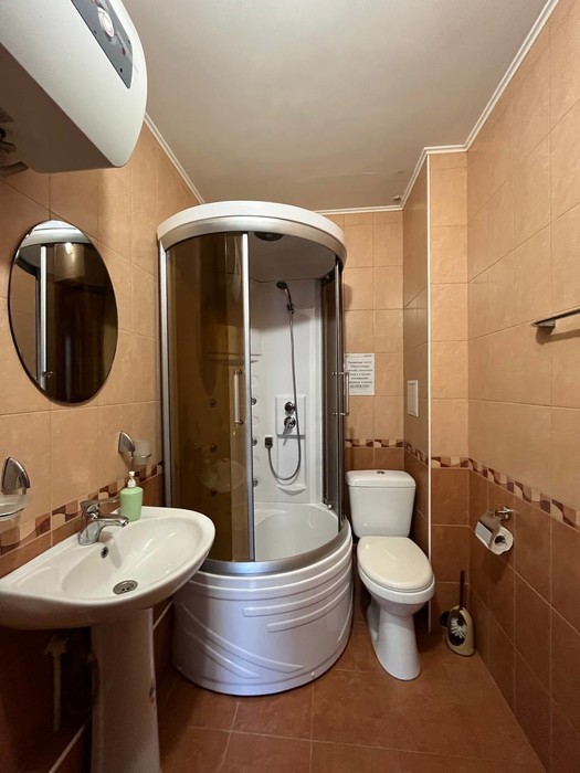 Место хорошее, есть нюансы. Были во второй половине августа 2025 года. Брали двухкомнатный номер, завтрак включен, завтрак сытный. Готовят не шведский стол а просто сами кашу, с яйцами что то, блины. Вид у нас был шикарный на втором этаже. Есть на первом этаже микроволновка, утюг, гладильная доска.