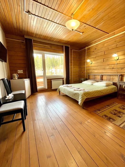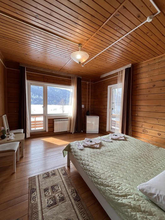 Отель очень понравился. Остановились семьей в двухкомнатном номере. Номер был очень просторным, была кухне. На кухне все необходимое - плита, посуда, микроволновка. Из номера открывался красивый вид на Телецкое озеро. Отель находится практически на берегу озера. На территории отеля есть детская площадка.