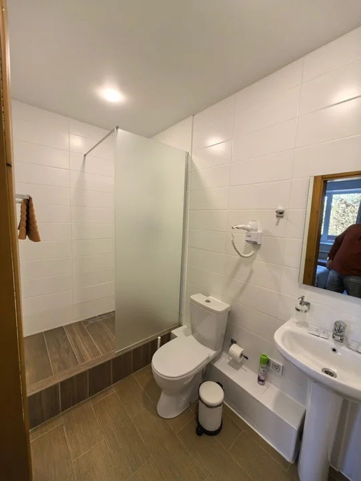туалет, умывальник, душевая кабина, халаты, набор полотенец, фен | терраса | диван |
