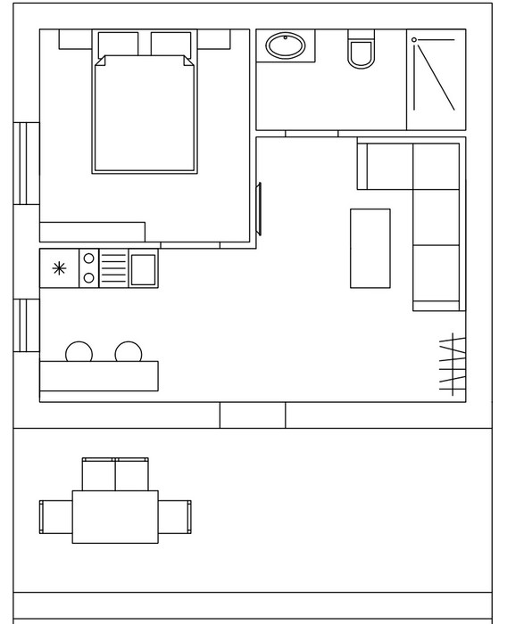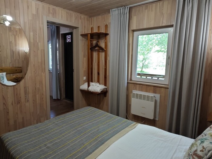 1 | 2-спальная | 40 м2, вешалка, прикроватные тумбочки с бра, столик, диван, стол, стулья, вешалка, телевизор, мини-холодильник, чайник | туалет, умывальник, душ, халаты, набор полотенец, фен | терраса | диван |