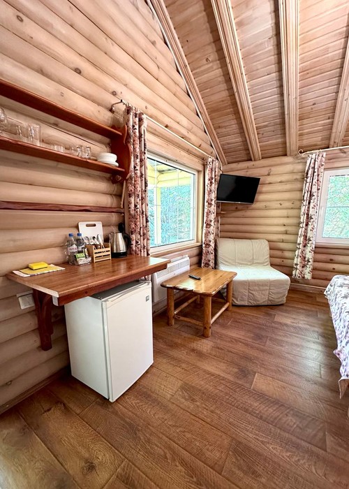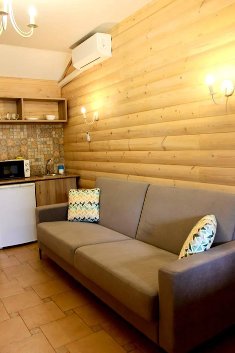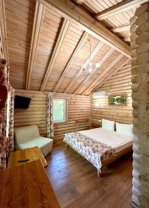 2 | 2-спальная | 40 м2, камин, вешалка, прикроватные тумбочки с бра, пуфик, столик, диван, кресло, вешалка, телевизор, мини-холодильник, чайник, кондиционер | туалет, умывальник, душ, халаты, набор полотенец, фен | терраса | диван |