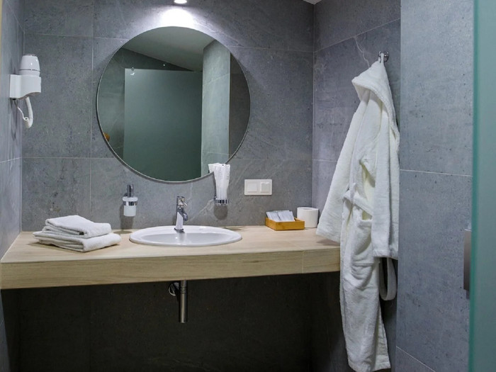1 | 2-спальная | 25 м2 вешалка, прикроватные тумбочки с бра, пуфик, телевизор, мини-холодильник, чайник, кондиционер | туалет, умывальник, душ, халаты, набор полотенец, фен | терраса | кресло-кровать |