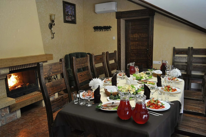 3-этажный коттедж на несколько номеров с общим каминным залом и кухонной зоной, беседки с мангалами и парковкой рядом с большим бассейном | 2 осн 1 доп |