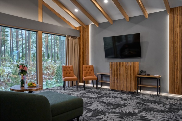 1-этажное шале на 2 номера с отдельным входом и террасой. Между номерами имеется переход, который может быть закрыт, либо открыт, если номера были объединены в один большой номер по запросу | 2 осн | 1 | 2-спальная | 38 м2 номер с возможностью объединиться с категорией Шале Twin Коннект в один большой номер панорамные окна, прикроватные столики, вешалка для одежды, шкаф, столик, два кресла, телевизор, мини-бар, чайник, кофейная станция, сейф, кондиционер, телефонтерраса (стол, стулья) |