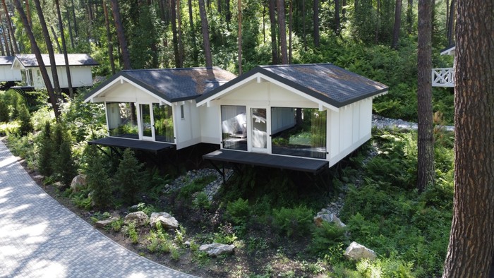 | Проживание (варианты размещения) | благоустроенные номера в 1-этажном шале на 2 номера (Шале Коннект Dabl, Шале Коннект Twin), работают круглогодично благоустроенные номера в отдельностоящих 1-этажном шале (Шале, Люкс), работают круглогодично |