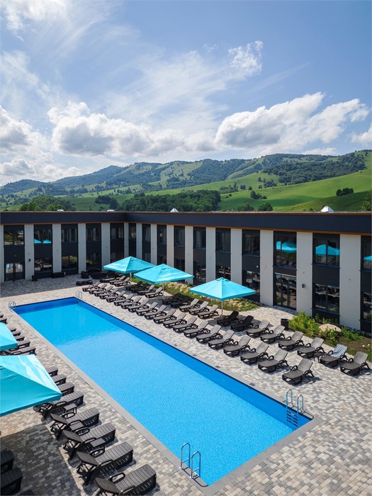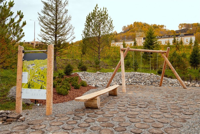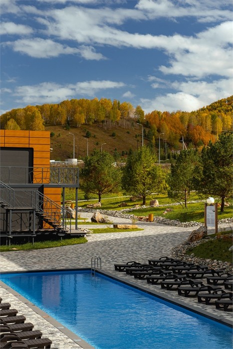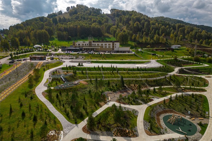 модульный отел и мотель комплекса «Altai Palace» (отель и коттеджи, казино, термальный комплекс, караоке-холл, проводятся шоу-программы и концерты, летняя зона отдыха с бассейном, спортивная площадка). На самой территории отеля есть бассейн, недалеко расположена небольшой парк с детской площадкой