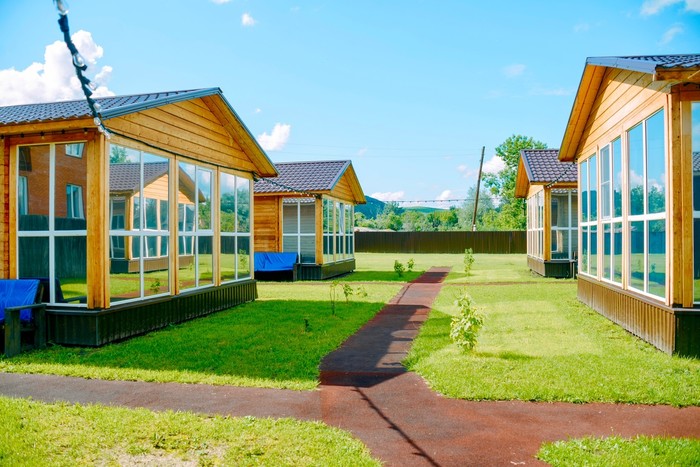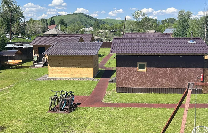 туристическая база с гостиничным корпусом и отдельностоящими домиками, спокойный семейный отдых, есть зона барбекю