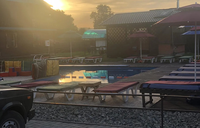 открытый бассейн , размер 4.80х9.70 м, глубина 1.30-1.60 м, детская зона в бассейне (отделена буйками), естественный нагрев, период работы с 01.06.25 по 31.08.25, шезлонгиИнфраструктура