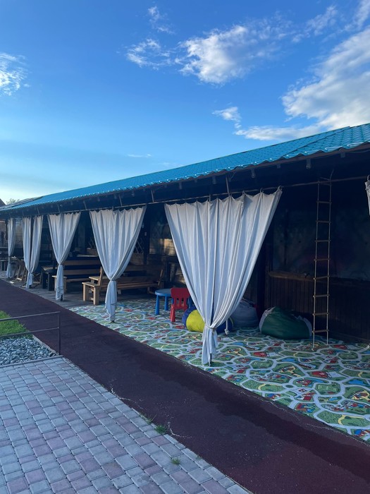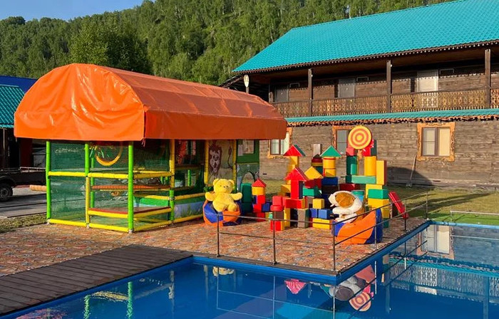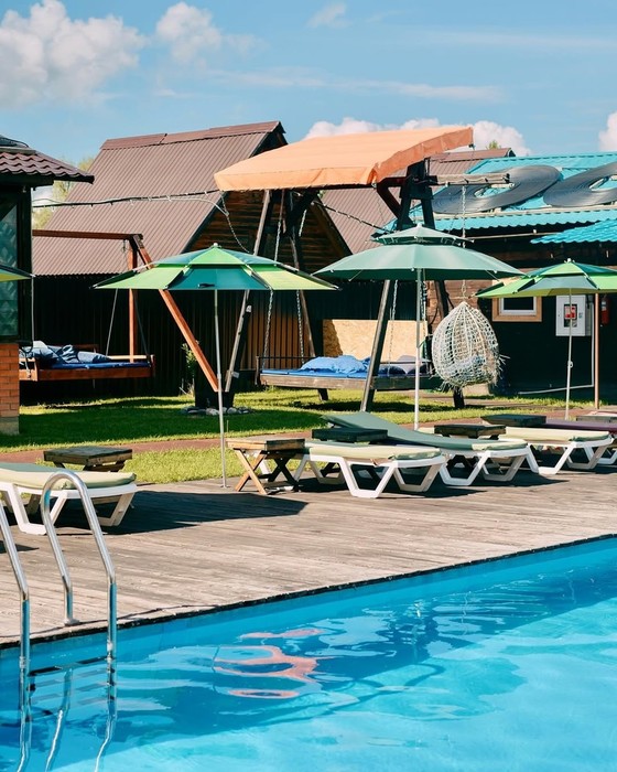 Есть чистый бассейн, баня, игровая площадка для детей. Хорошие номера и отдельные домики. Нам понравилось здесь