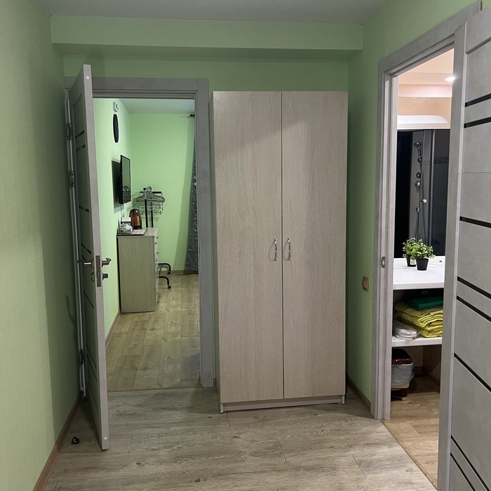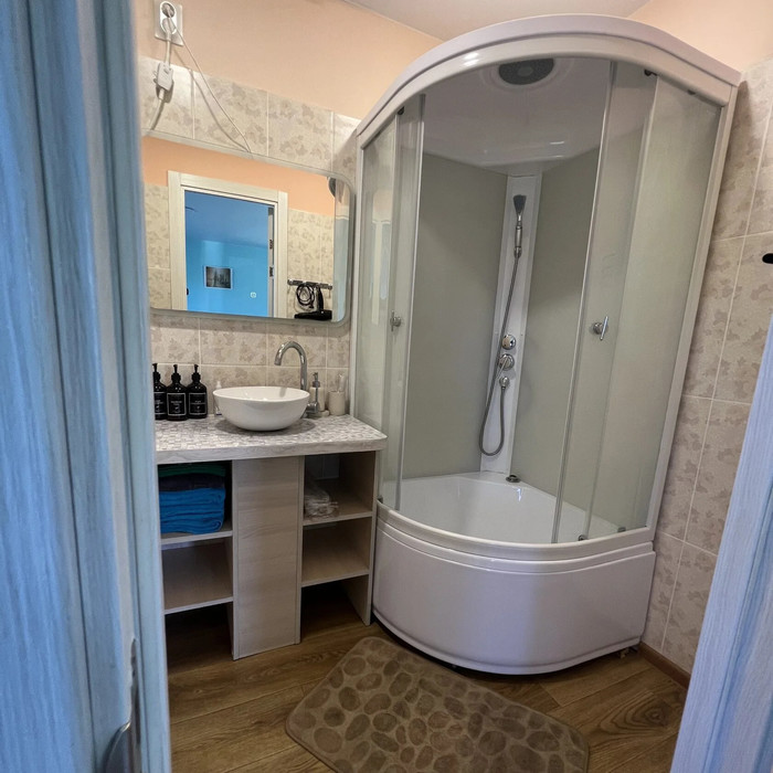 2 | 2-спальная, два 1-спальных дивана | 36 м2, прикроватные тумбочки, шкаф-купе, комод, стол, стулья, диван, телевизор, мини-холодильник, чайник, кондиционер | туалет, умывальник, душевая кабина, фен | раскладуш-ка |